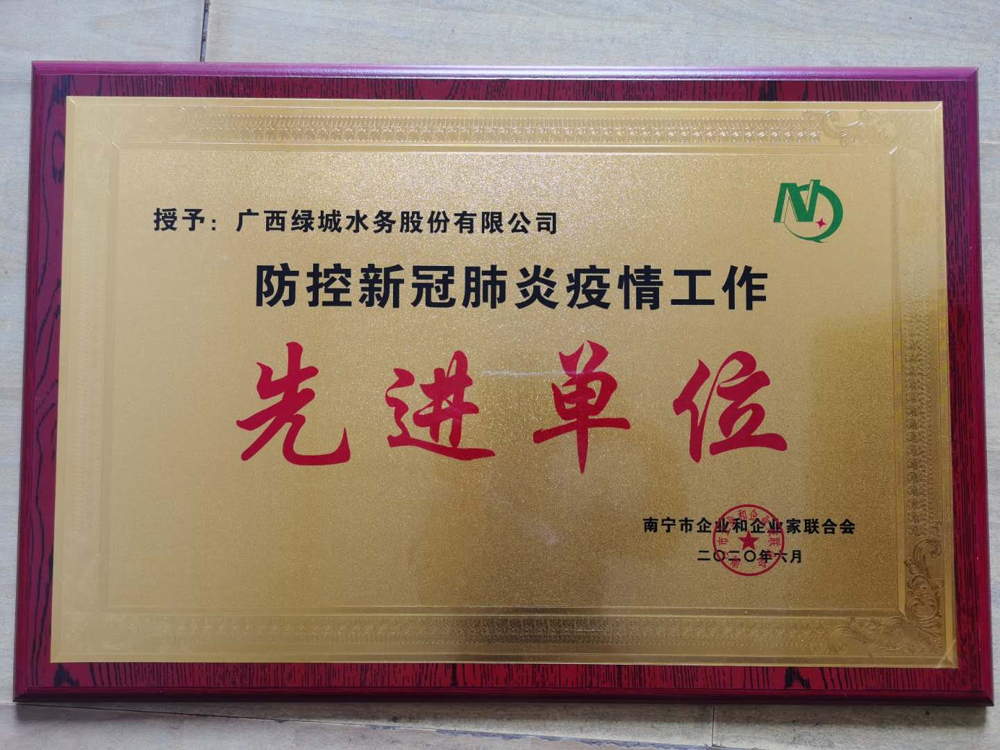 近日,南寧市企業和企業家聯合會舉辦“防控新冠肺炎疫情工作暨經驗交流會”,對在防控新冠肺炎疫情中做出貢獻的單位進行表彰,綠城水務榮獲“防控新冠疫情工作先進單位”榮譽稱號。