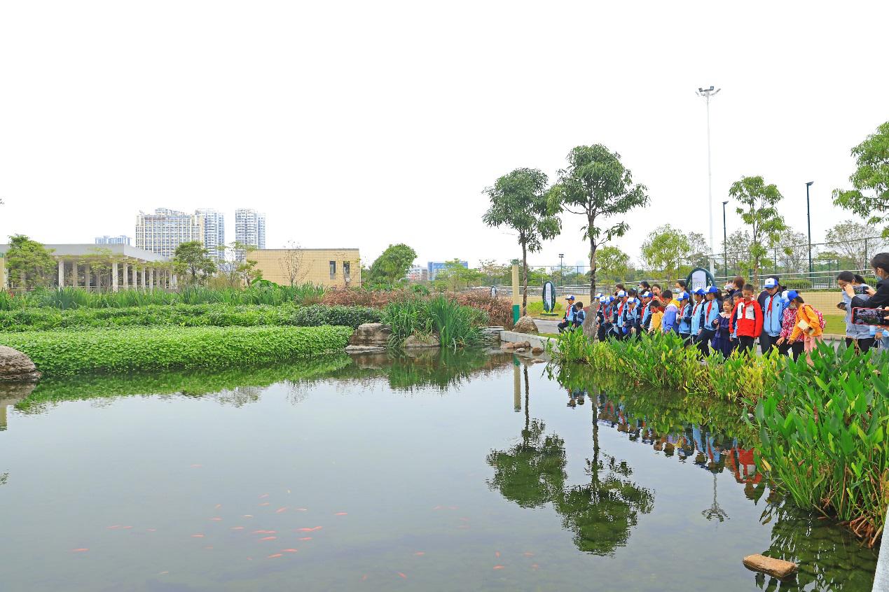 在中水回用景觀點(diǎn)“在水一方”,孩子們加深了對(duì)“中水回用”了解。